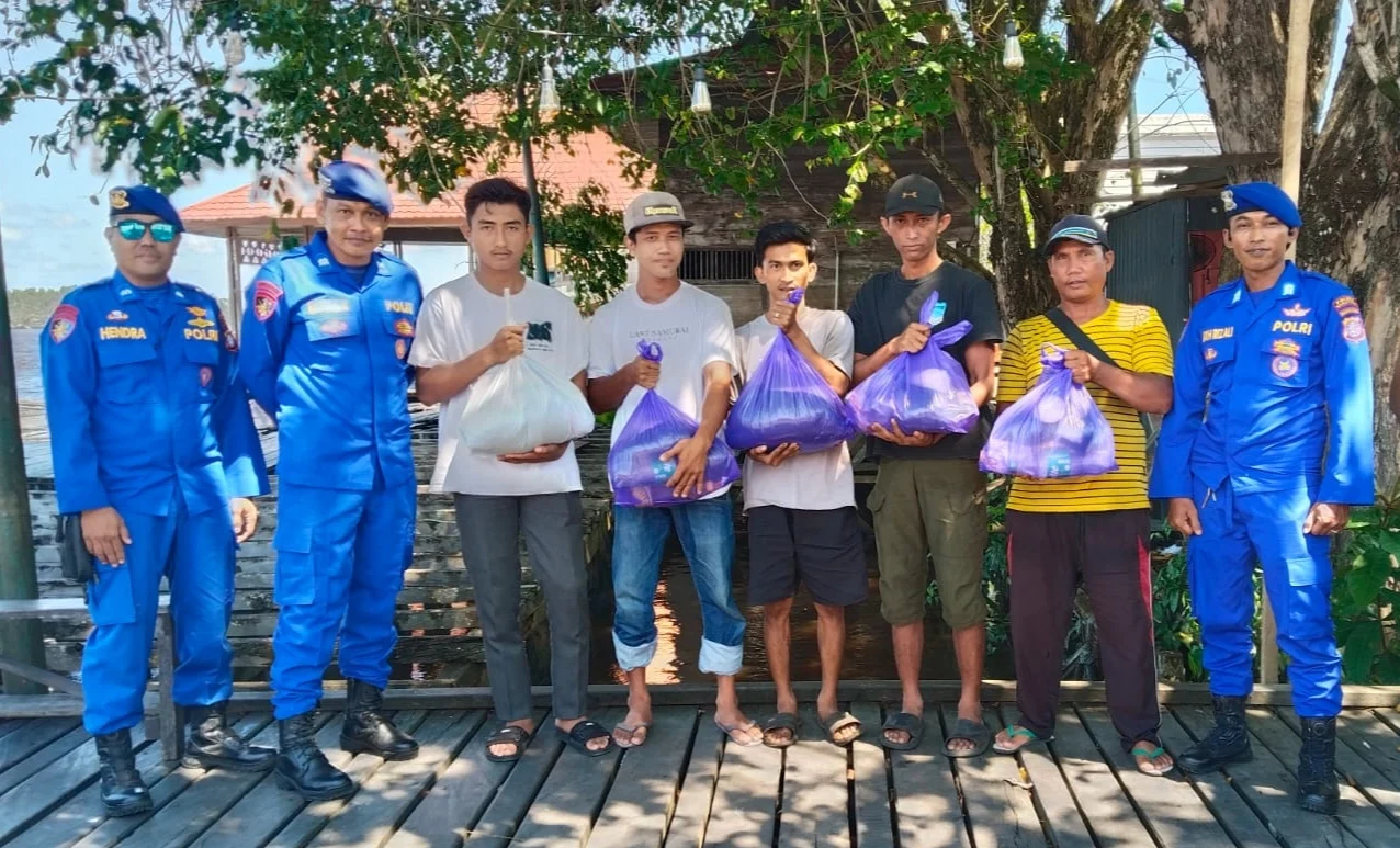Satpolairud Polres Seruyan Berikan Bantuan Sosial kepada Buruh Dermaga Bongkar Muat